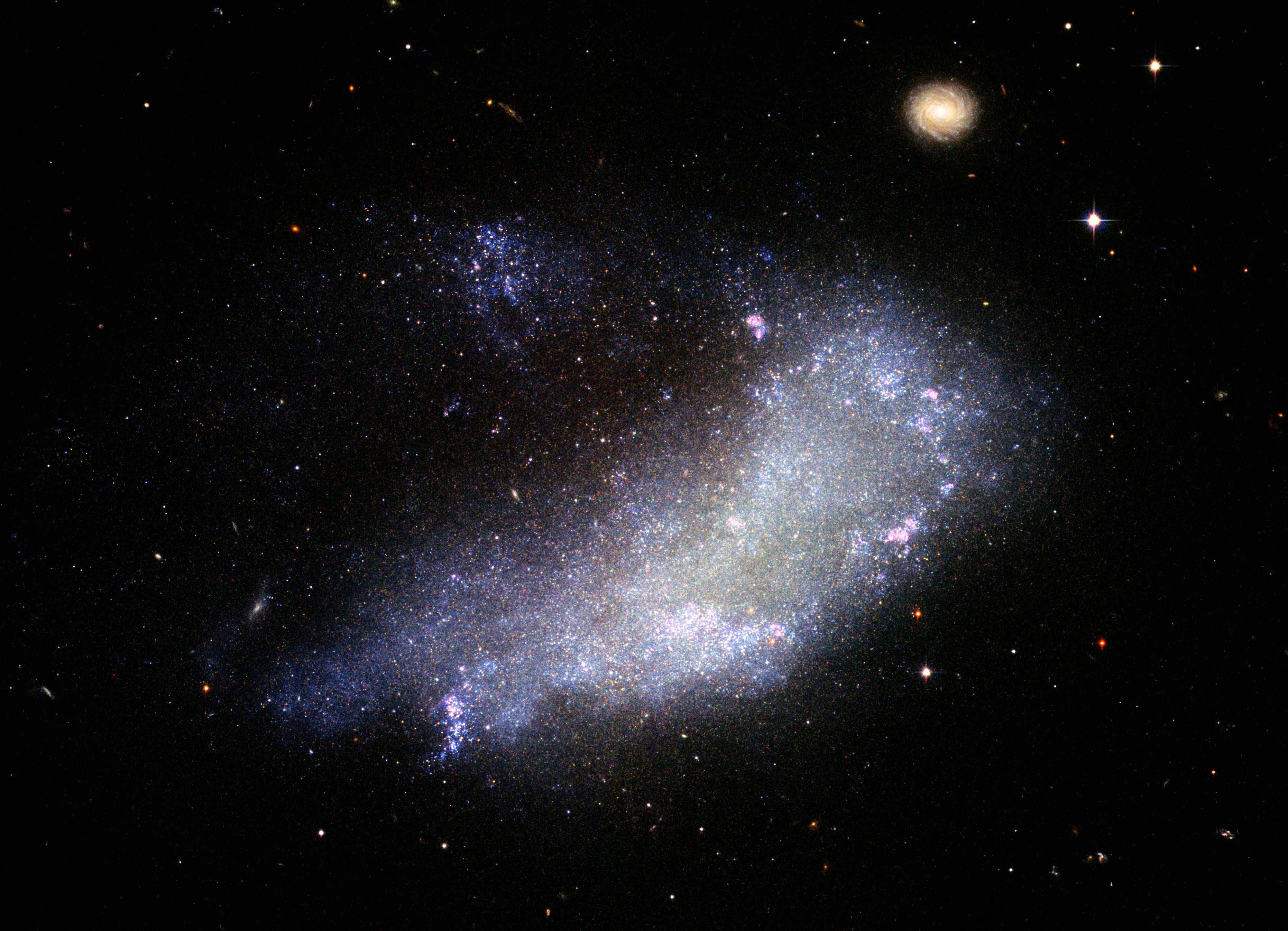 An irregular galaxy has no defined shape. As many as 25% of all galaxies are irregular. They tend to be smaller galaxies that may have been shaped by having interacted with larger galaxies. The Magellanic Clouds, which is only visible in the Southern Hemisphere, are the only irregular galaxies that can be seen from Earth without a telescope.